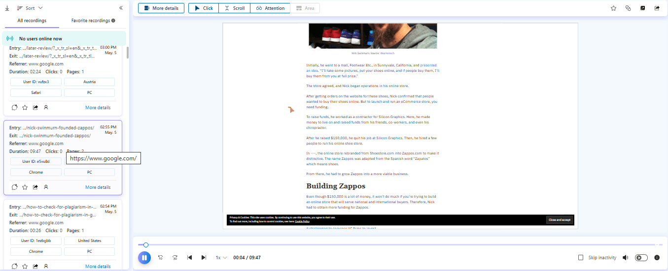 Microsoft Clarity calculates time on page for every visitor and also provides recordings that show how visitors behave on your page.